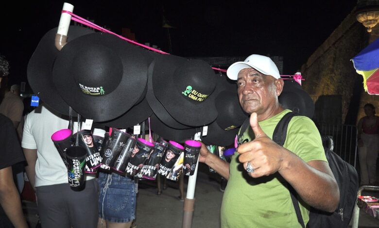 O sucesso do acessório não ficou restrito ao palco. Para muitos trabalhadores autônomos, a popularidade de Natanzinho foi uma oportunidade de negócio. Antônio Souza, morador do bairro Laguinho, viu no chapéu a chance de garantir um faturamento maior na virada de ano. “Vim fazer uma renda extra e as vendas estão ótimas. O povo não quer só ver o show, quer estar caracterizado”, afirmou o vendedor, que esgotou parte do estoque antes mesmo do show principal.