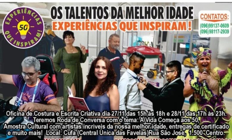A capital amapaense recebe, nos dias 27 e 28 de novembro, o projeto “Os Talentos da Melhor Idade: Experiências que Inspiram”, iniciativa da artesã, poeta, produtora cultural e empreendedora, Robenita Batista. O evento será realizado no espaço da Central Única das Favelas (CUFA) e busca valorizar habilidades artísticas e profissionais de pessoas com mais de 50 anos, público frequentemente afetado pelo etarismo.