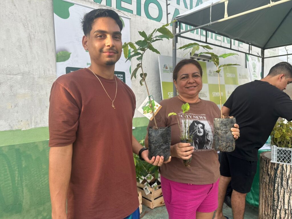 No período da manhã, foi realizado uma ação de troca de 2 garrafas pets por uma muda de planta, incentivando práticas de reciclagem e arborização urbana.