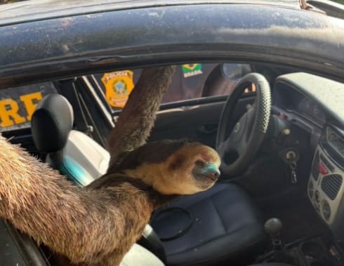 A Polícia Rodoviária Federal (PRF) flagrou o transporte irregular de um bicho-preguiça na região do Torrão do Matapi, interior do Amapá. O animal era transportado em um carro e o responsável foi autuado no local.